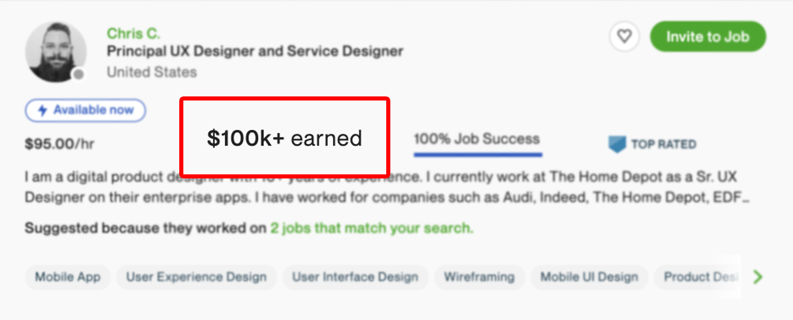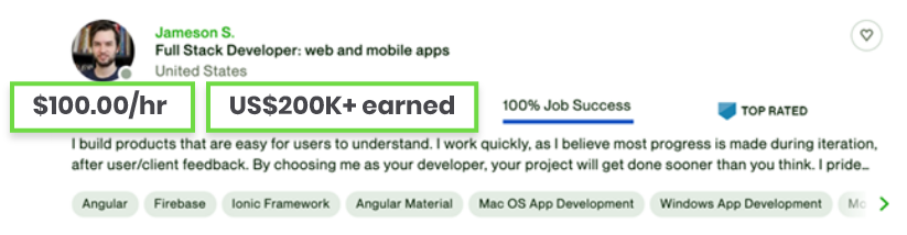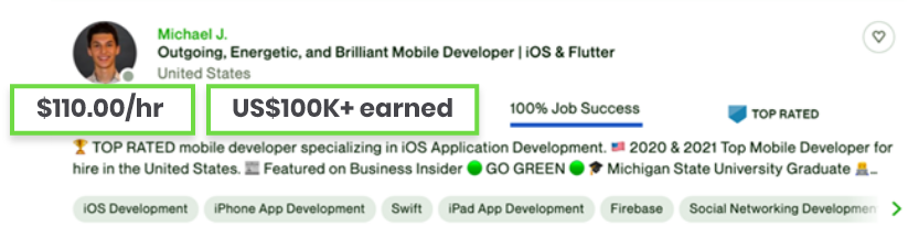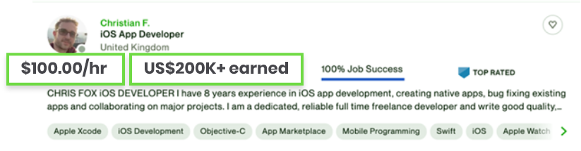 Chris made over $100,000 on Upwork, creating simple mobile apps for over 225 people.